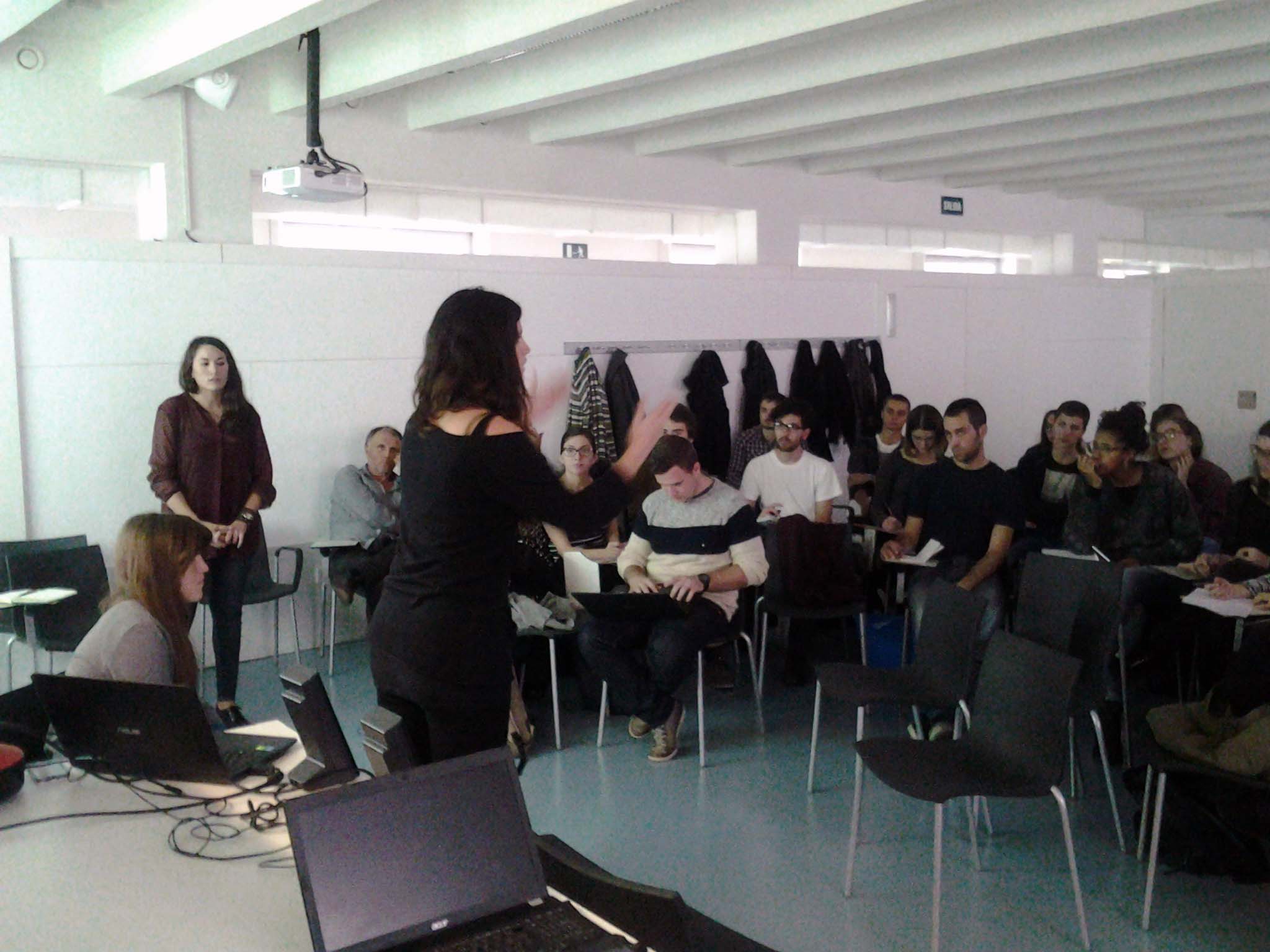 Después las colaboradoras del Colectivo [IN]SOS (http://insos.tk/) nos contaron la creación de dicho colectivo, a partir de las jornadas [IN]SOSTENIBLE en 2012, que tenía como objetivo una reflexión crítica sobre la situación del arquitecto. En 2014 se comenzó la reestructuración hasta convertirla en Asociación Universitaria para poder llevar a cabo proyectos de arquitectura participativa.