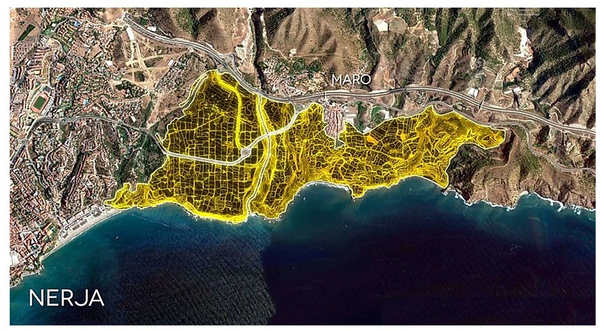 Plano del ‘Plan Larios’ sobre 200 ha de alto valor agrícola, cultural y paisajístico. Fuente: plataforma ‘Otro Maro y Nerja es posible’